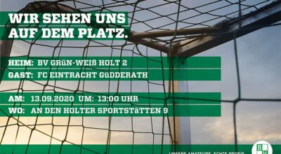 11. September 2020 11. September 2020Grün-Weiß Holt 2 vs. Eintracht GüdderathAm Sonntag empfängt die Reserve von Grün-Weiß Holt Eintracht Güdderath. Schon nach dem Spiel wird […]
